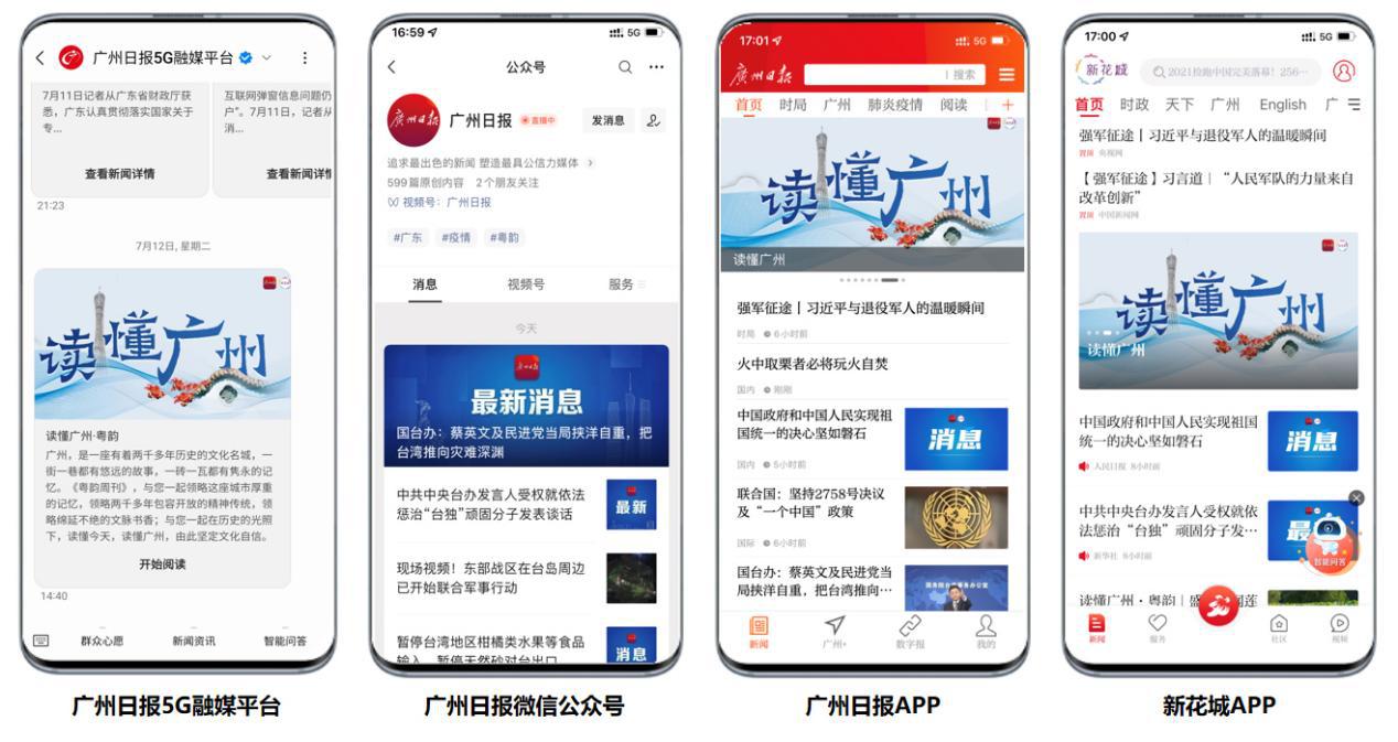广州日报5G融媒平台与广州日报公众号、广州日报APP以及广州市(区)融媒体云平台的核心产品“新花城”在应用层面上可实现相互连通,互相引流,为广州日报融媒体大平台解决用户推广运营难题,成为三级党政媒体与人民群众交流互动的新触点,做到真正的“最后一公里”。